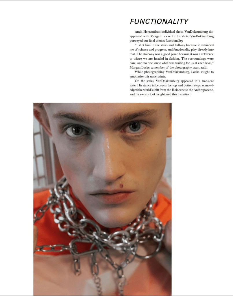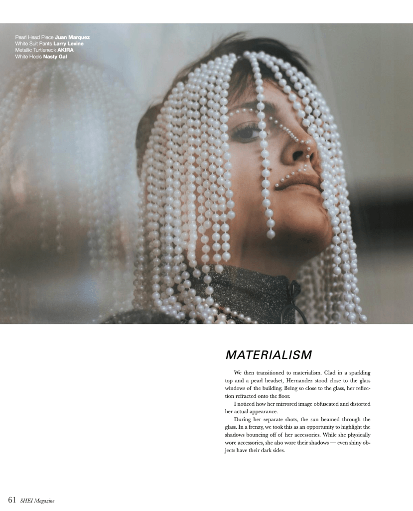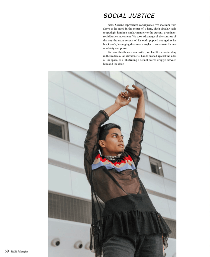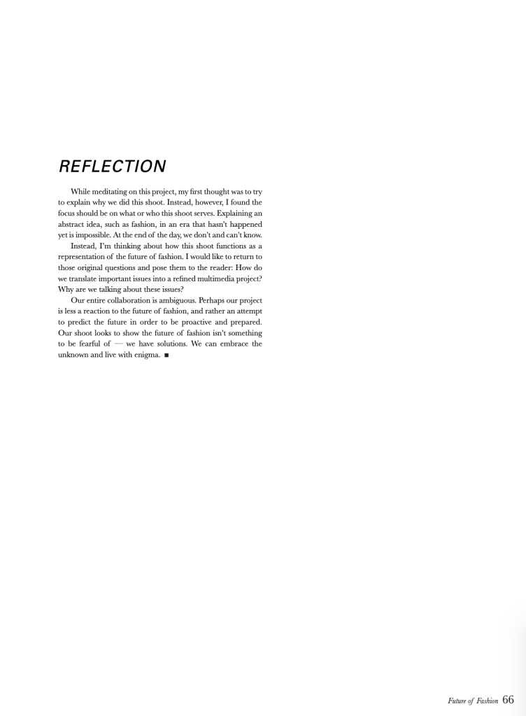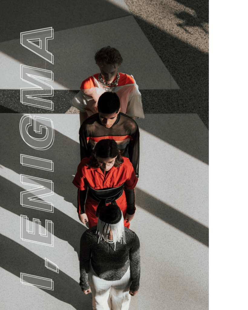 “I, ENIGMA” for SHEI FUTURE OF FASHION Print Issue W20. Stylists: Isabelle Fisher, Juan Marquez, Jacob Ward. Photographers: Alex Andersen, Amira Hassan, Morgan Locke; Models: Emily Goodrich, Isabel Hernandez, Javier Soriano, Jameson VanDokkumburg.