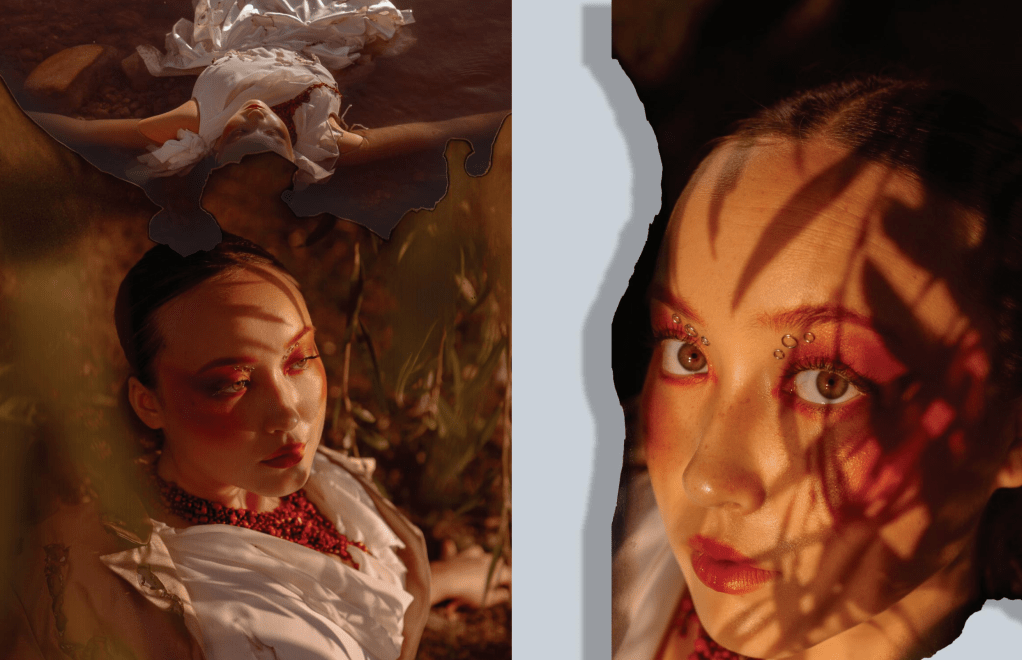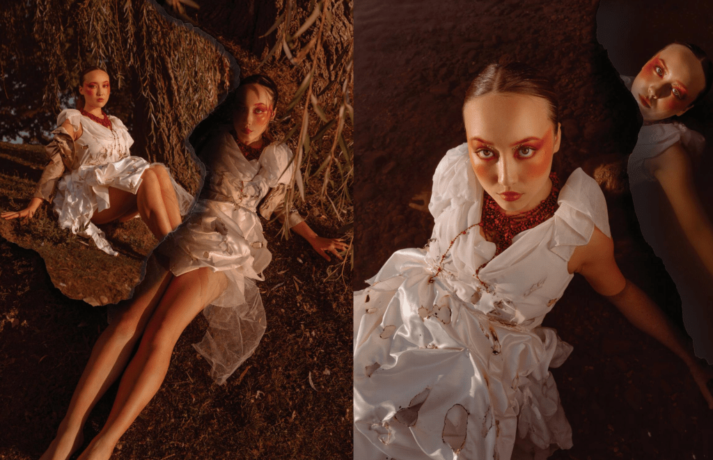 “Temptation” for SHEI ODYSSEY Print Issue W22. Outfit thrifted and upcycled by Josie Burck, Karly Madey & Jacob Ward. All credits in-image.